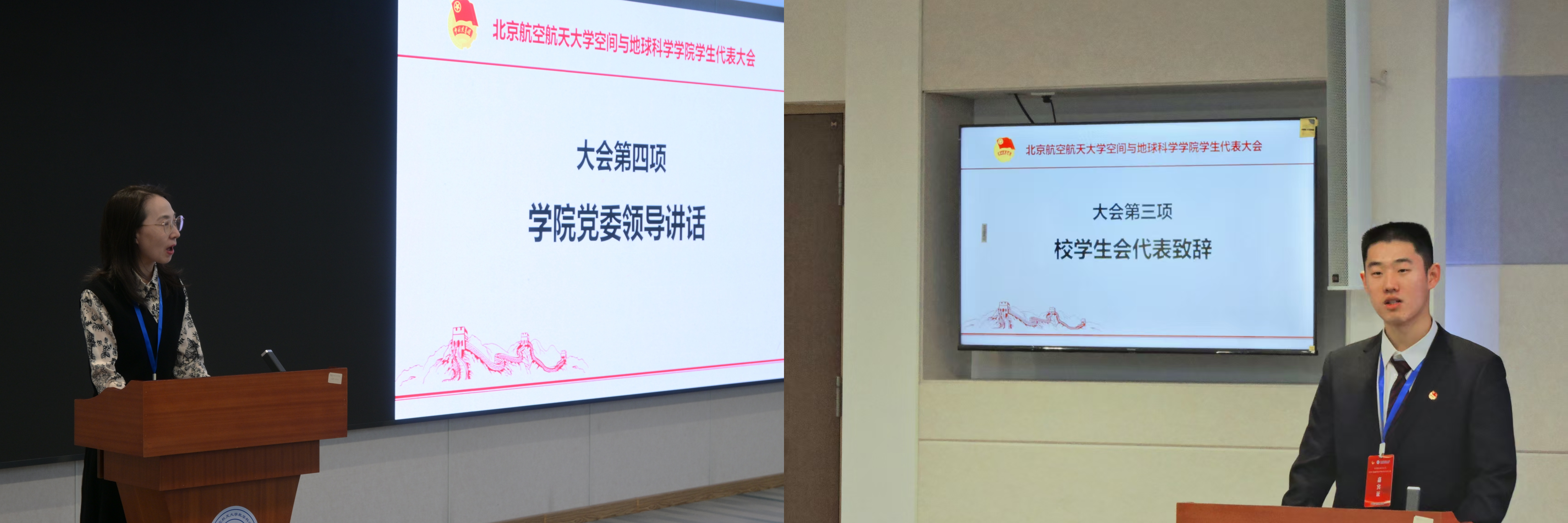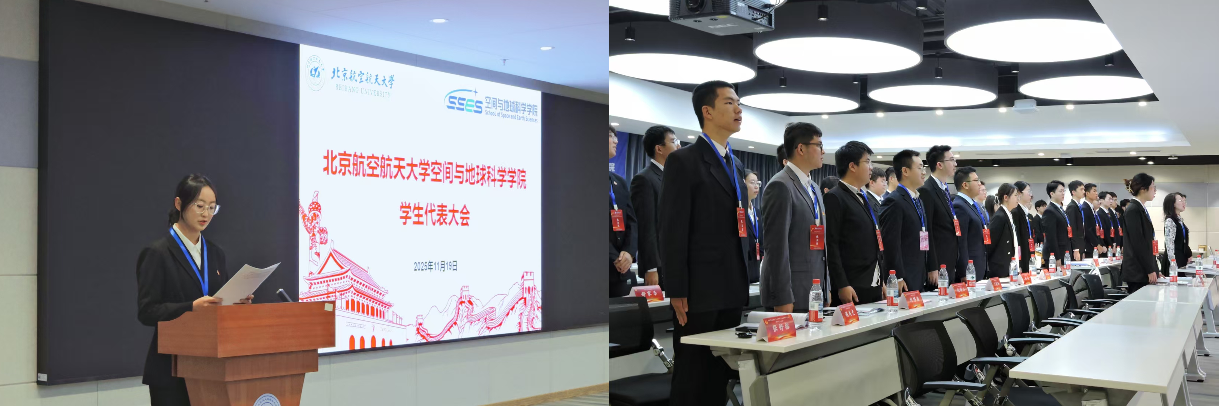 在深入学习贯彻党的二十届四中全会精神,奋力推进“十四五”规划圆满收官、科学谋划“十五五”发展蓝图的关键节点,11月19日下午16时,空间与地球科学学院第六次学生代表大会在北航沙河校区主楼E803召开。北航校学生会代表范学成、学院党委副书记徐墨客、团委书记门雪洁、团委副书记唐琳惠以及我院本科生各年级学生代表 37 人参会。会议由2025级本科生何佳蓉主持。大会在庄严的国歌中隆重开幕。
